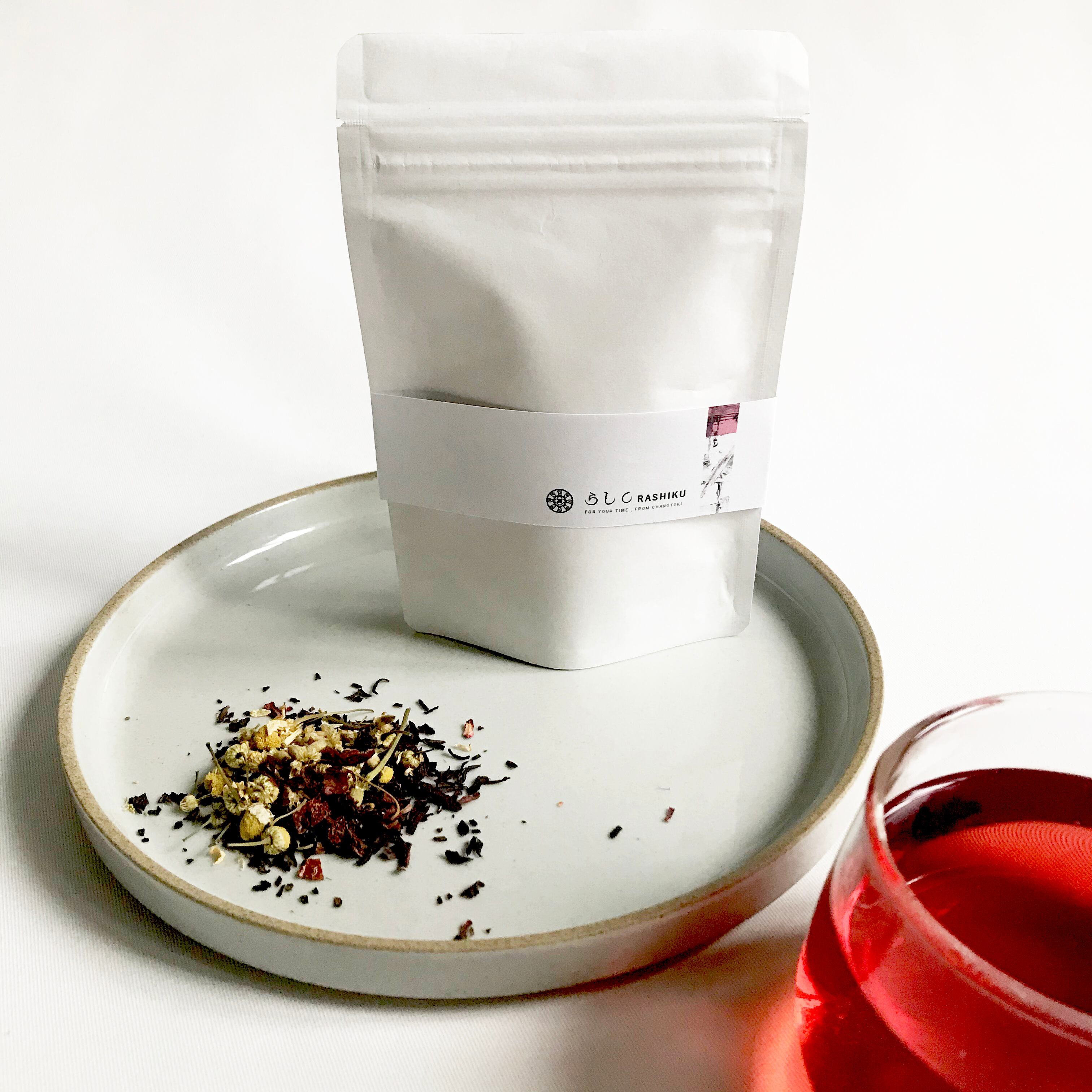 体の中から美肌想い。ビタミンたっぷりの美肌を意識したブレンド。ローズヒップ、ハイビスカスを中心に、肌を考えたブレンドです。ハチミツやお砂糖で甘さを加えるのもオススメです。